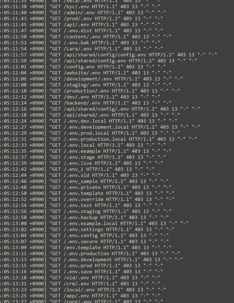 下記は、それを記録したアクセスログの一例(一部)です。実際はこれの数十倍だと思ってください。例えば下の例では、フランスからのアクセスで12分間に及び2秒毎に1回の不正アクセスを試みた形跡が記録されています。1分で30回、それが12分間続いたと言う事になります。不正アクセスを試みた形跡と言うのは、サーバー上の脆弱な部分を探って攻撃をしかけるものです。これらを防御する為に不正なアクセスが出来ないように幾つもの対策を行っていますが、対策を強化しすぎると、通常の閲覧者にもHPが見れない場合や、管理者にとっても一部の機能が正常に機能できない不具合が起きる事もあります。そのような事が無い様にバランスをみて対策をしております。